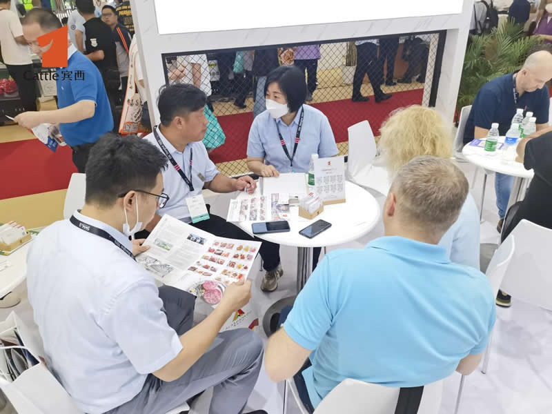 賓西展臺現場咨詢的客戶人潮涌動,絡繹不絕。本次展會攜帶百余種產品參展。向國內外消費者展現賓西集團明星產品,全面展示賓西優質肉制品,產品線豐富、品類全、給客戶提供從源頭到餐桌的高品質形象。